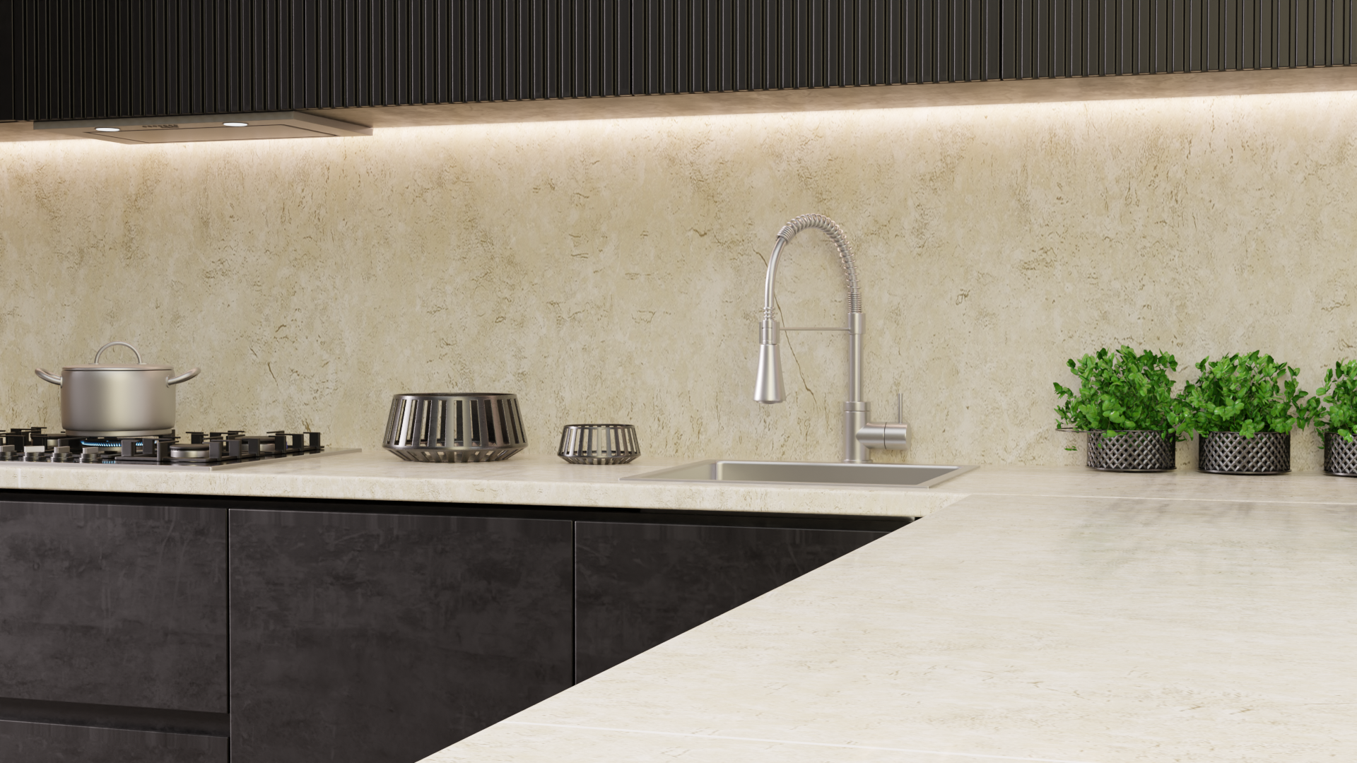 Banheiros, cozinhas, escritórios, lavabos, quartos e salas recebem soluções específicas, desenvolvidas para potencializar o desempenho técnico e ampliar a percepção sensorial de cada espaço. O resultado são ambientes que dialogam entre si, preservando suas particularidades e reforçando uma linguagem contemporânea e sofisticada.
