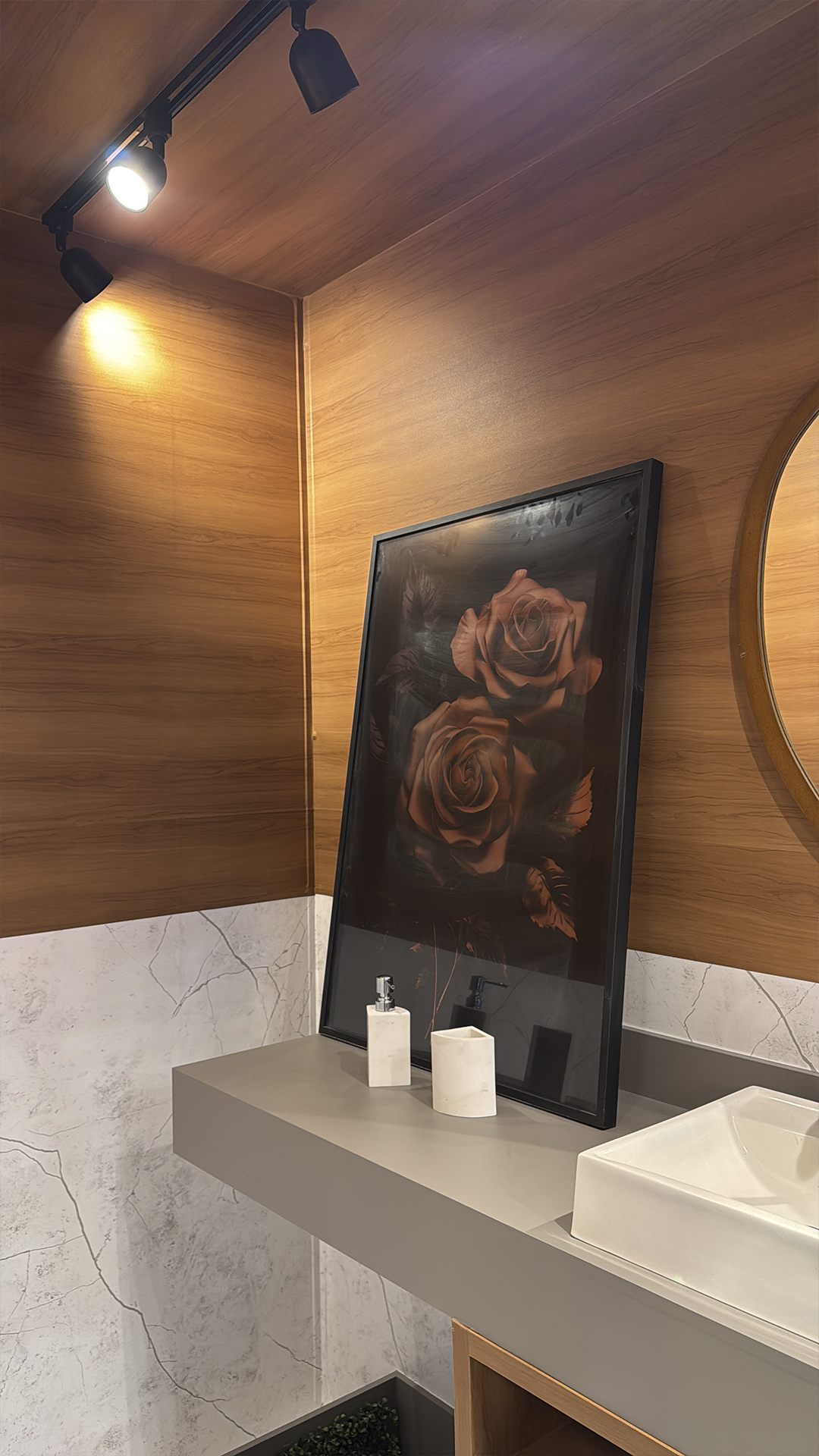 Mais do que revestir, nossas soluções constroem experiências visuais, promovendo sofisticação, fluidez e coerência estética. O lavabo se transforma em uma extensão do conceito arquitetônico — onde design contemporâneo, criatividade e desempenho técnico se encontram para surpreender e marcar presença.